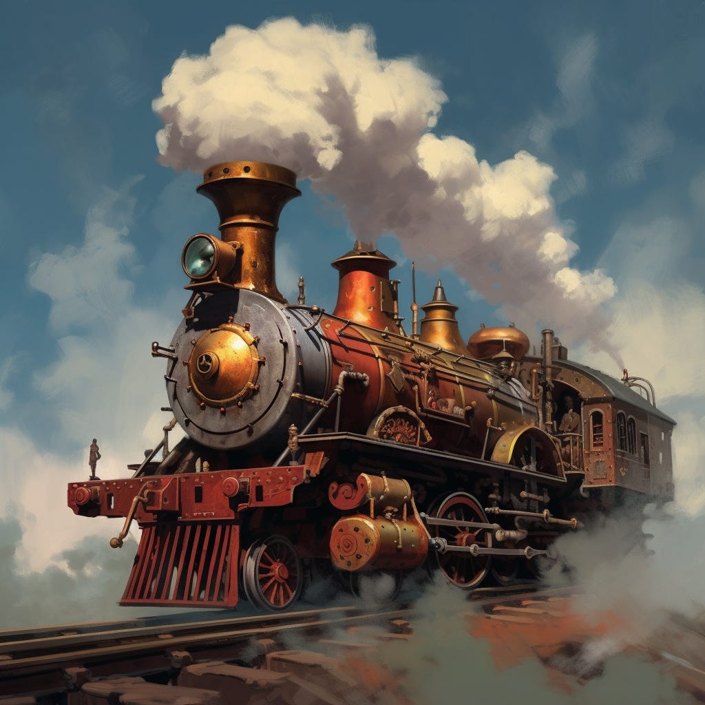 Kraen rode up to the ingenium and steadied his pistol on the train’s captain. He flicked the gun, motioning for the man to get down. The captain was a burly man with a pot belly and a crooked nose. He gulped his fear, but made no move to get down, likely fearing Rome more than the marauder before him.