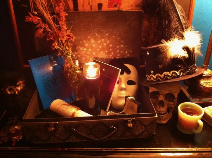 She would never stop wishing, years later, that her grandfather could have met that woman in the witch outfit. She’d wish her whole family could have seen, could have known. She’d wish she could have stayed lost just a little longer, scared but alight, in the winding streets of the Manor on the Green, the darkness a cloak, her lightstick a blazon, her hidden candy a talisman, a ward against the falling night.