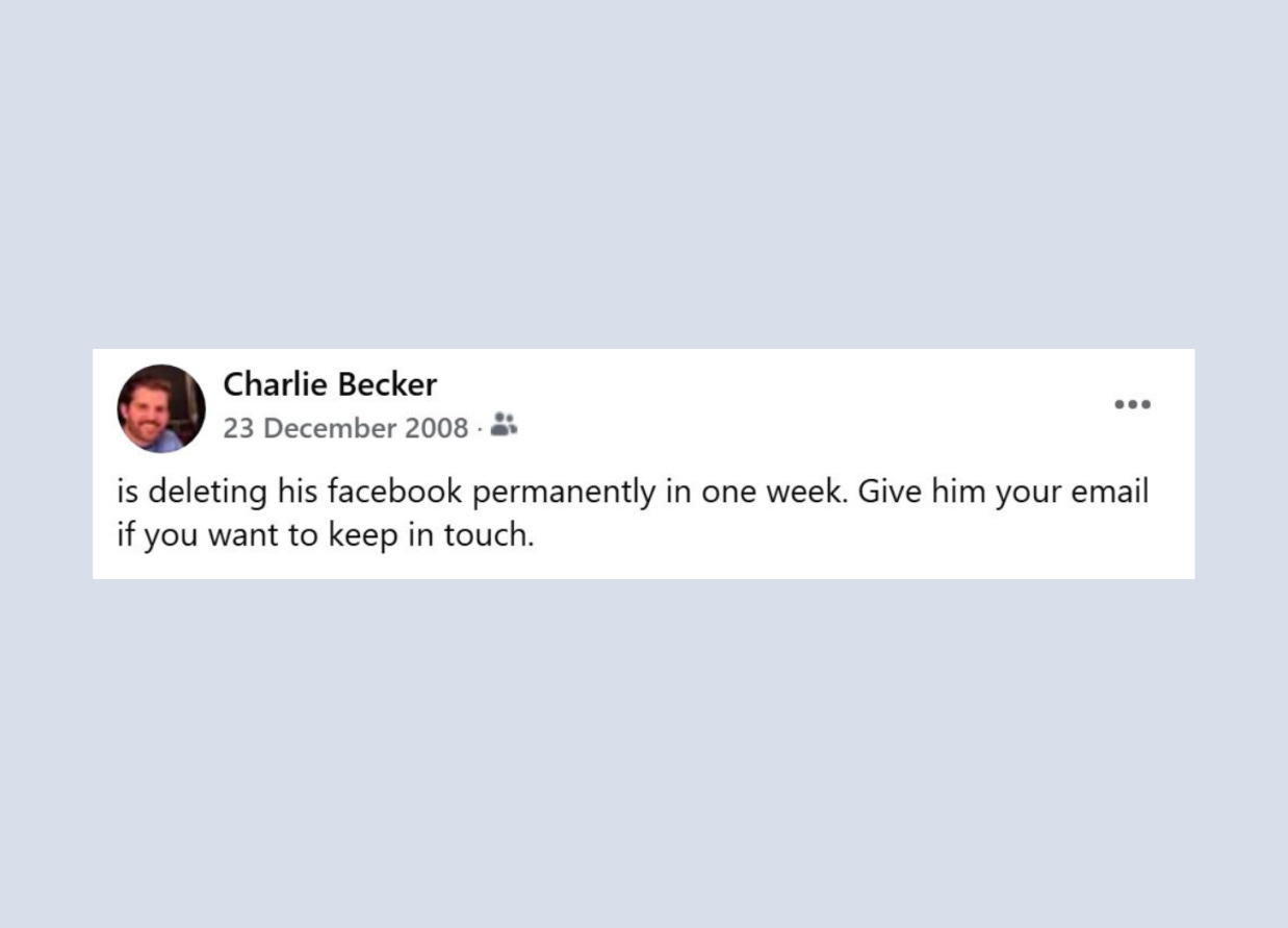 A year later, when George Floyd was killed and the Covid lockdowns were happening and people would start protesting, and I couldn't contain my arguing and was just all over the place. Even once I put self-imposed moratorium on commenting, I couldn't stop checking social media. I realized that Facebook was no longer a useful tool to connect me with people or stay in touch, and it maybe had never been. I read a few books on social media and decided to deactivate Facebook for eighteen months.
