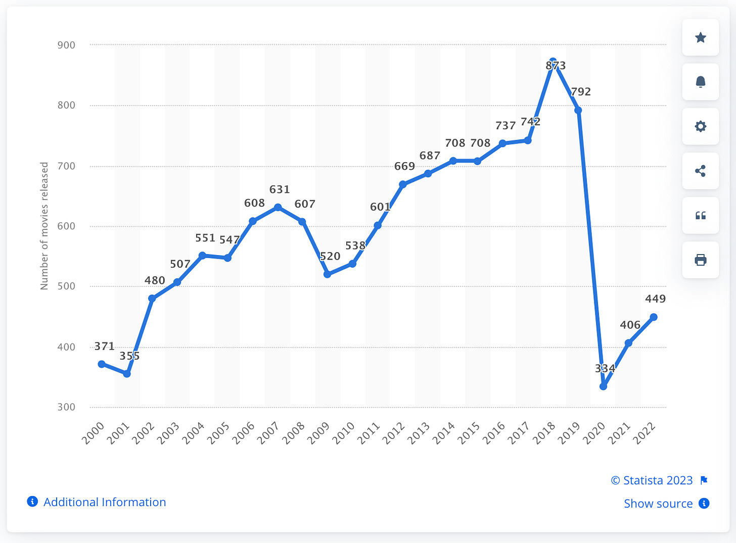 https://www.statista.com/statistics/187122/movie-releases-in-north-america-since-2001/7