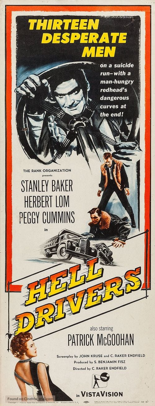 ‘The Welsh Marlon Brando’ Stanley Baker stars as a down-on-his-luck working class bloke with a shady background who manages to blag himself a job at an equally shady seeming trucking company. They pay big money but expect their drivers to take extreme risks by delivering their cargo at breakneck speeds. There is fierce competition among the drivers (who all have a mid century masculinity that it impossible to fake. Young Sean Connery is somehow not the toughest guy in the room).